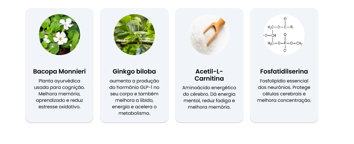 Com o uso contínuo e na dosagem correta, o organismo passa a estimular novas conexões neurais, reduzir a sensação de mente cansada, melhorar a concentração, acelerar o raciocínio e fortalecer a retenção de informações, promovendo mais confiança e desempenho mental no dia a dia.
